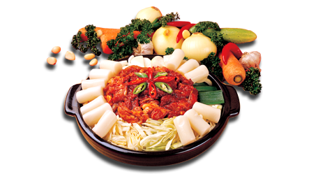 Golden Rice cake , Sizzing in A rich broth with Vegetables, Chicken, Shrimp, and Beef